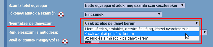 - A Beállítások oldalon megadható, hogy papír alapú számlák esetén csak az első (eredeti) példány nyomtatására tartunk igényt: