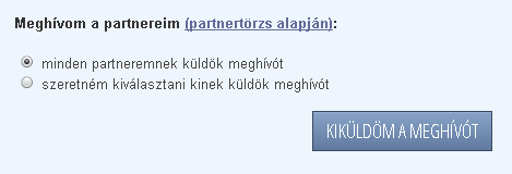 A leghatékonyabb módszer azonban, ha saját partnereidet hívod meg a rendszer használatára. Vevődi között minden bizonnyal sokan számlakibocsátók is – vélhetően nekik is szükségük van egy egyszerű és gyors számlázóprogramra. Minden egyes partnerednek küldhetsz egy kattintással ajánlást a Számlázz.hu rendszeréről („minden partneremnek küldök meghívót”), de a partnereid közül egyesével is válogathatsz, kijelölve a kívánt személyeket/cégeket. A választó-képernyőn nem csak válogathatsz partnerei között, de meg is változtathatod a tárolt email címüket. Figyelem! Ez a funkció csak azokat a partnereidet érinti, akik a partnertörzsben email címmel rendelkeznek!