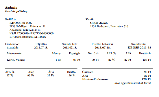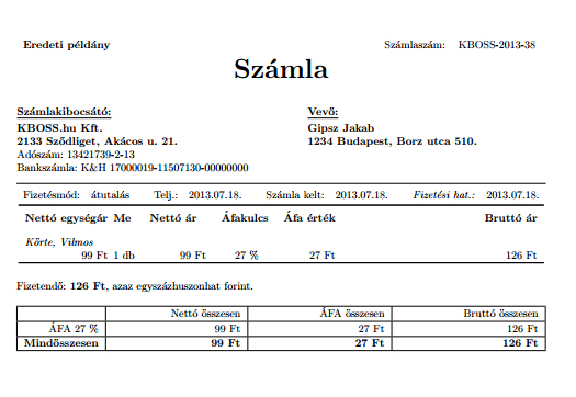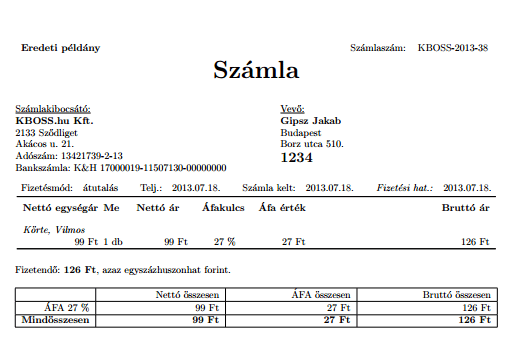 Ez a legelterjedtebb számlaképünk, hiszen minden számlakibocsátói fiókban ez az alapértelmezett.