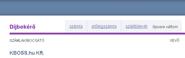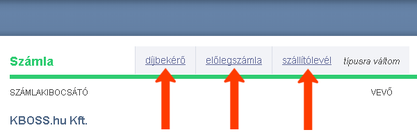 A megjelenő számlaszerkesztő képernyő felső részén tetszőlegesen kiválasztható a szerkesztett számlatípus.