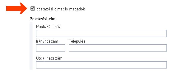 A számlázási cím alatti jelölőnégyzettel adhatod meg a vevőd postázási címét.
