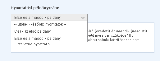 Papír számla nyomtatási példányszáma a beállítások oldalon adható meg.