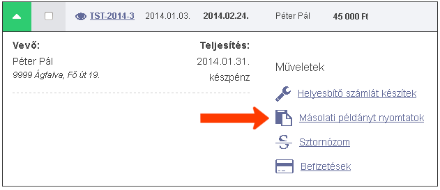 Ez a számla elkészítése után, a műveleti sávból lehetséges.
