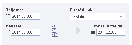 Fizetési határidő: a számla keltétől számított 60 napon belül megadhatsz bármilyen dátumot. Ez az adat nem kerül be a könyvelésbe (kivéve: késedelmi kamat számítása), tehát szinte bármilyen dátumot megadhatsz.