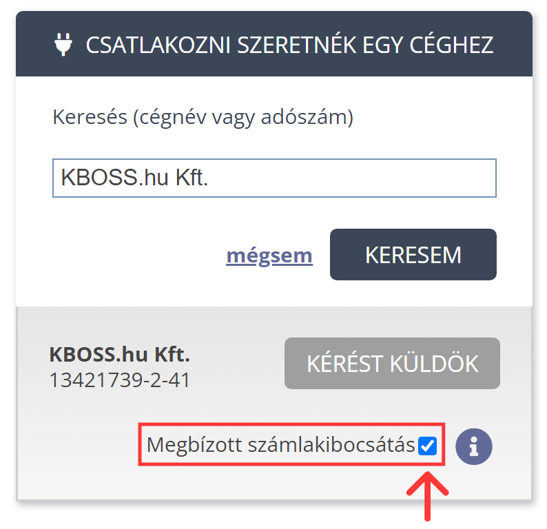 A 4. pont bármelyike esetén szükséges az, hogy beszállítód (megbízód) engedélyt adjon neked a számlakibocsátó fiókja használatára. Erről email üzenetet fogsz kapni.