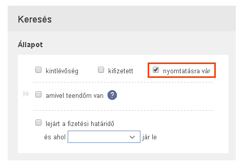 Majd pedig közvetlenül a nyomtatásra váró számlák jelölőnégyzetre.