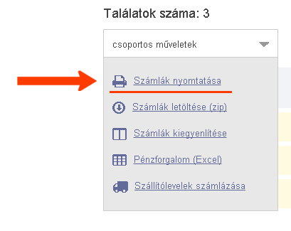 Az így leválogatott számlák a csoportos műveletek segítségével egyetlen nagy PDF dokumentumként lekérhetők, nyomtathatók.