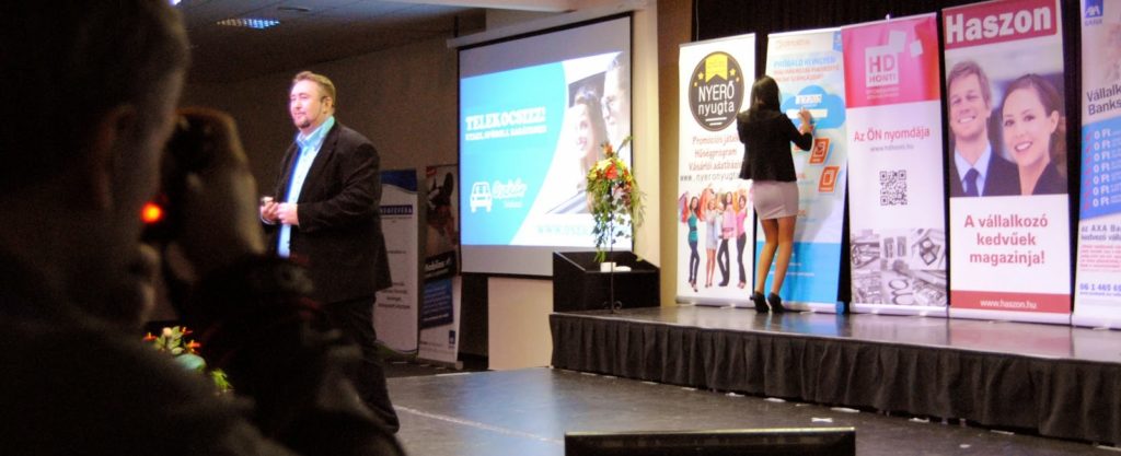 Az lett, hogy kénytelenek voltunk megkérni Adriennt, hogy időnként javítsa ki a banneren szereplő számokat, mégsem állíthatunk valótlant egy egész konferencia-napon keresztül. Így történt, hogy bár a konferanszié egy ízben megpróbálta felelősségre vonni a hekkert, hogy mégis mit csinál, ő tette a dolgát, és még olyan előadó is akadt, aki szándékosan félreállt, nehogy eltakarja az update folyamatban lévő a reklámhordozót… Fogadjátok szeretettel képriportunkat a rendezvényről!