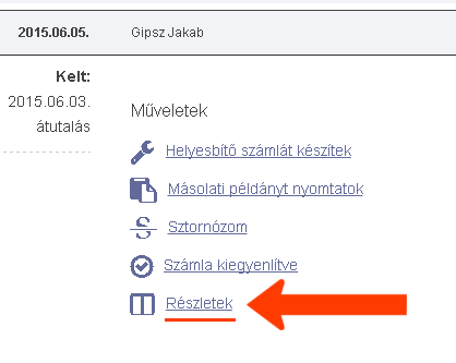 A számla belső adataihoz kattints a Részletek feliratra