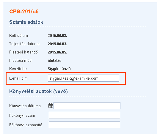- akkor a számlához tartozó vevő emailcíme