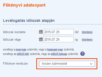 Bár a Listák menüpanelen található Főkönyvi adatexport lekérdezés elsősorban a főkönyvi rendszerek felé történő adatáramlást segíti, található itt egy összes számlaadat nevű opció is.