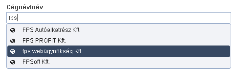 A Számlázz.hu esetén elég a vállalkozás nevének kezdetét begépelned, és azonnal megkapod a vállalkozás teljes nevét, a címét, és az adószámát is. Többek között ezért is érdemes a Számlázz.hu-val számláznod.