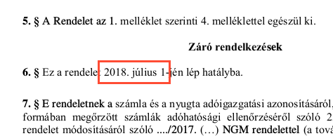 A jogszabály hatályba lépésének jelenleg tervezett időpontja: 2018. július 1.