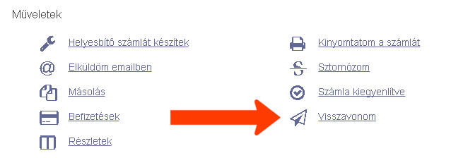 6. Ha ismét lenyitod a műveleti sávot, az ikon segítségével visszavonhatod a postázási kérelmed. Figyelem! Ez a lehetőség csak néhány óráig él! Nagyon hamar “kezelésbe vesszük” a postázásra küldött számlaleveleket: nyomtatjuk, borítékoljuk, és már loholunk is a postára. Ha ez megtörtént, akkor nem tudjuk “visszahívni” a már kinyomtatott számlát.