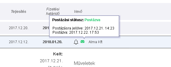 7. A számla melletti ikon folyamatosan mutatja, hogy ezt a számlát mikor adtad postára, és hogy annak postázása ténylegesen megtörtént-e.