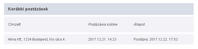 8. Ha egy korábban postázott számlánál ismét a “Postára adom” ikonra kattintasz, akkor a megjelenő adatlap alján láthatod, hogy a számlát korábban pontosan mikor adtad fel.