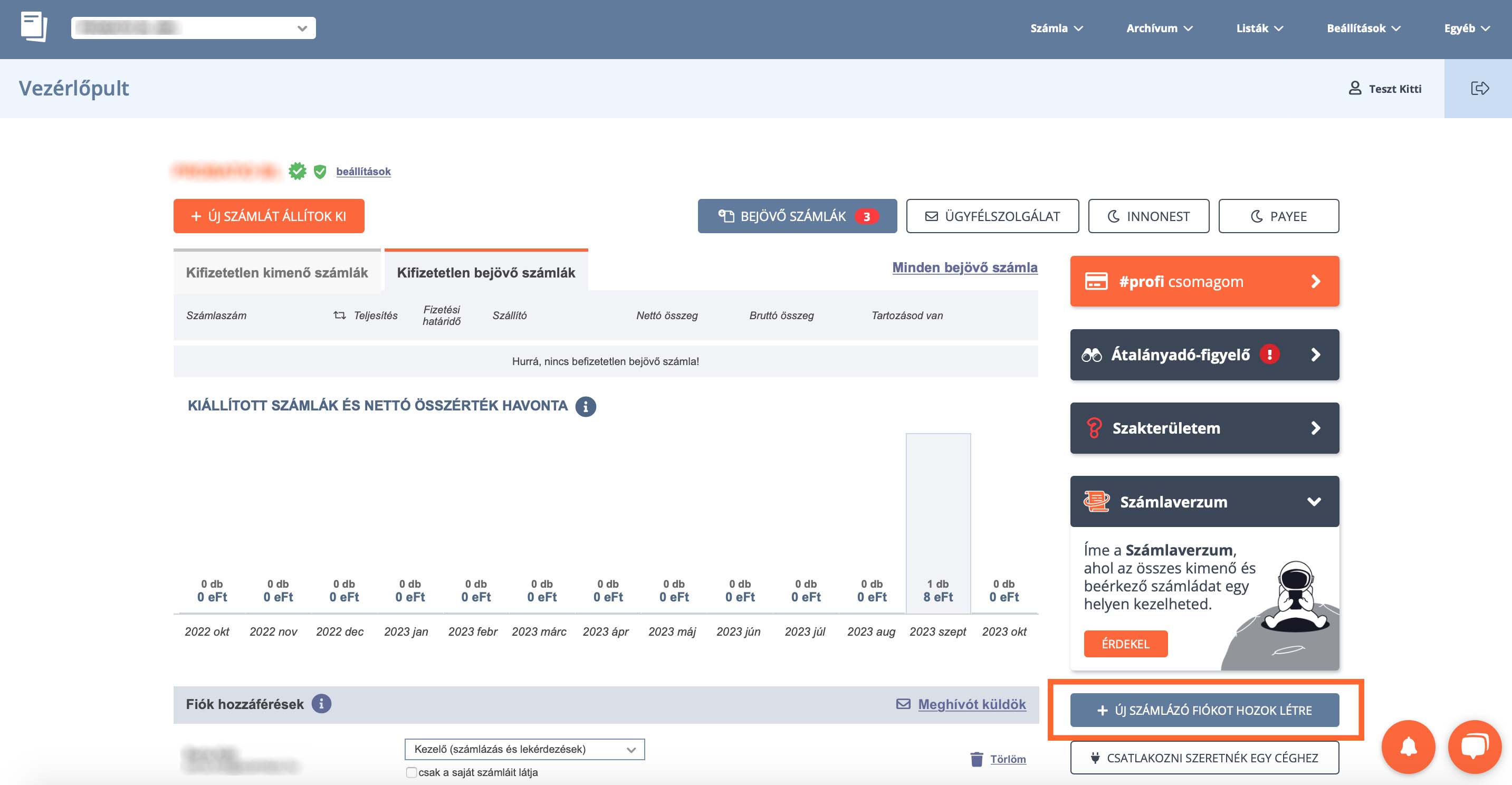 - Jobb oldalon kattints az „Új számlázó fiókot hozok létre” gombra