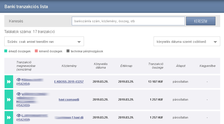 És egy átlátható felületen kereshetsz a teljes bankkivonatodban: