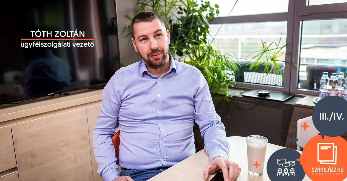 A teljes húszfős csapat lenne a Számlázz.hu ügyfélszolgálata? Vagy Tóth Zoltánnal, az ügyfélszolgálati vezetővel együtt összesen négyen dolgoznak a kérdéseitek, 180 ezer user leveleinek megválaszolásán? Mindkét válasz helyes: a teljes csapat azért dolgozik, hogy vállalkozóként (és Számlázz.hu-használóként) minél kevesebb problémát kelljen egyedül megoldanotok. Közben pedig egy nagyon elkötelezett alegység veletek közvetlen kapcsolatot tartva minden felvetést igyekszik gyorsan, érdemben megválaszolni. Menedzsmentünket (és néhány belső “titkunkat”) bemutató sorozatunk első részében Ángyán Balázs ügyvezetővel beszélgettünk, őt Tóth Attila IT-vezető követte a sorban, a harmadik kérdéssor nyomán Tóth Zoltánt ismerhetitek meg közelebbről.