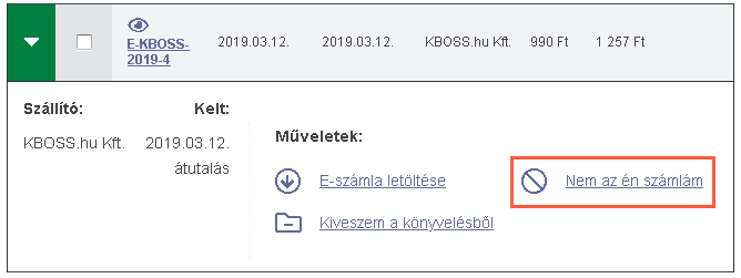 Ha egy ilyen idegen, általad nem ismert számlát látsz a számlázási fiókodban a bejövő számlák között, bármikor kattinthatsz a “Nem az én számlám” elutasító opcióra.