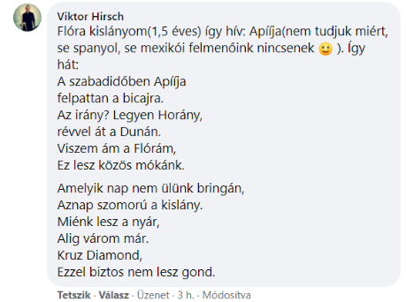 Hirsch Viktor kislánya hatására rímekbe szedte a gondolatait: