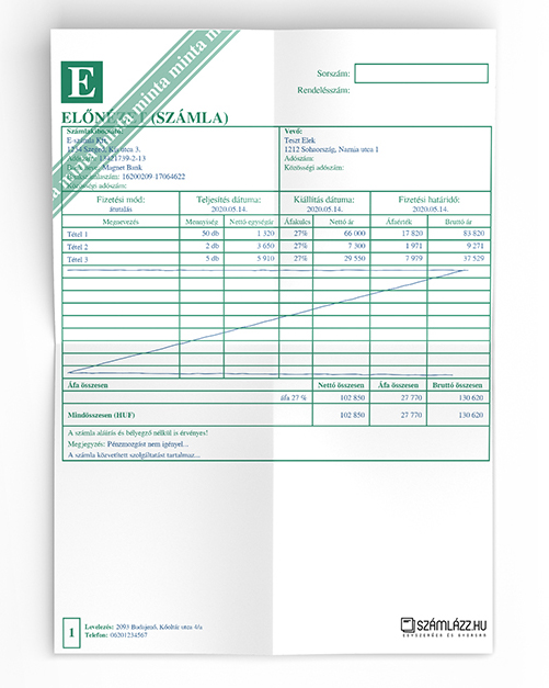 • Számla előnézet: Mielőtt elkészíted a számlát, megnézheted, mit fog látni a vevőd – ráadásul különböző, vállalkozásod színére szabható számlakép közül választhatsz!